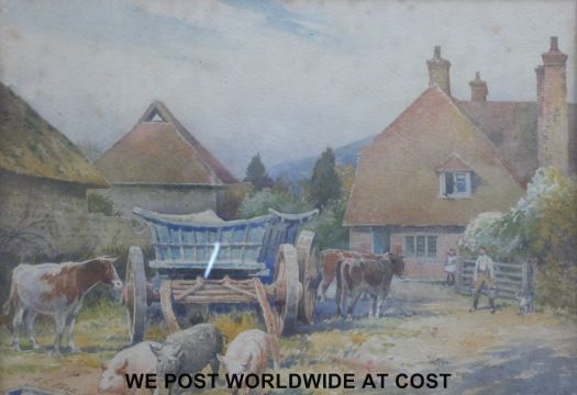 A C Fare watercolour of a farmyard scene dated 1953 (26 x 37cm)