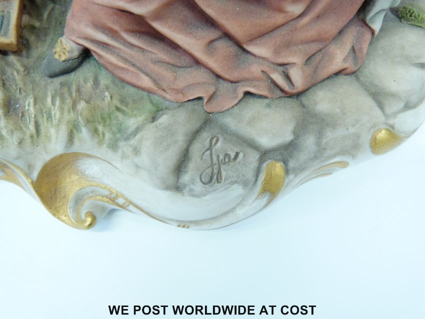 A Capodimonte figure of an artist and another larger signed example of a shooting scene