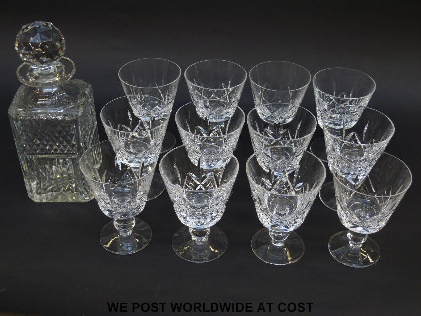 A set of 12 Stuart Crystal cut wine glasses (12.7cm tall), together with a decanter