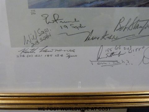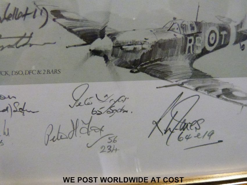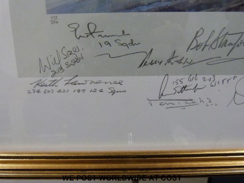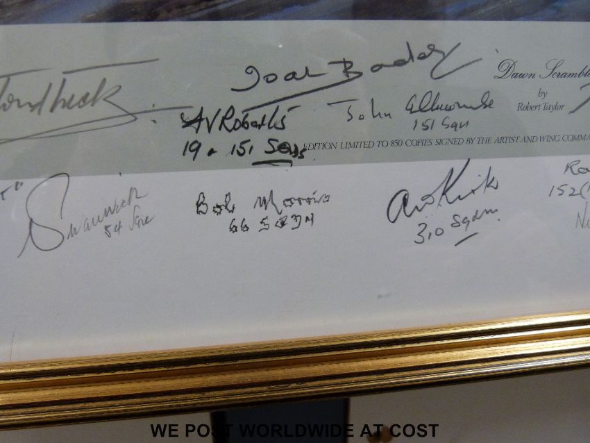 Robert Taylor edition 278/850 print 'Dawn Scramble' with multiple squadron/pilots signatures and remarked in pencil with a picture of a Spitfire (44 x 60cm)