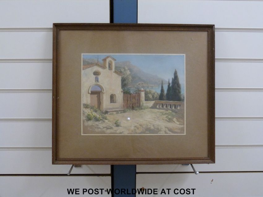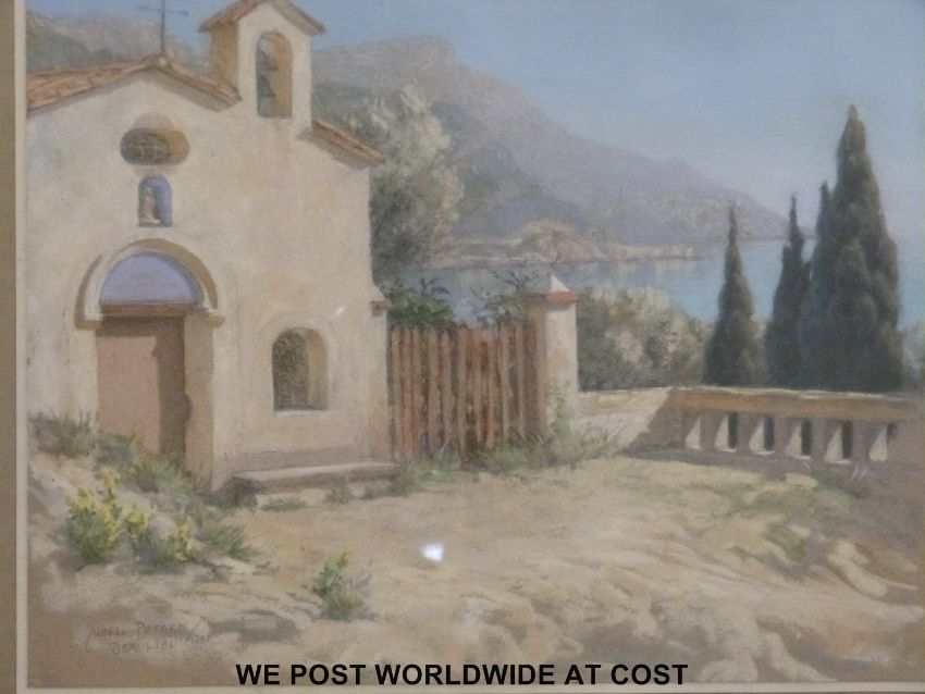 R. Noel Pocock (children's book illustrator) two pastels Cap d'Antibes and La Madone de Beaulieu, one being signed and dated 1920 both with signed and titled pencil labels verso (26 x 31cm)
