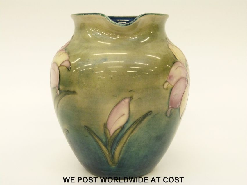 Moorcroft jug in Spring Flowers pattern, c1930's, impressed and signed Moorcroft, signature to base (15.5cm tall)