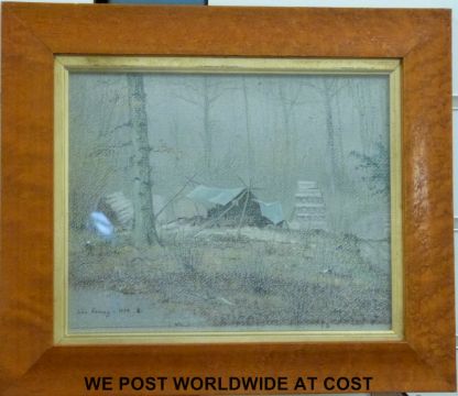 John Reaney framed pastel of wooded encampment (20x25cm)