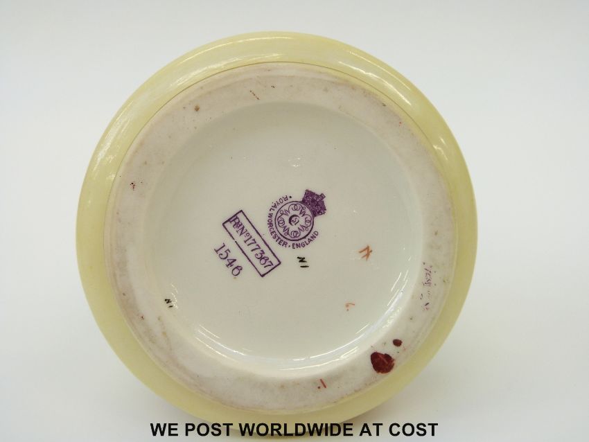 Royal Worcester blush ivory flatback jug with flowers and ornate scrolling handle, puce Worcester mark and shape no 1546 to base (17.5cm tall)