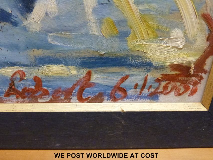 Robert Hobhouse 'Swans at Greinton' oil on canvas, framed (78 x 91cm)