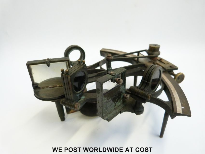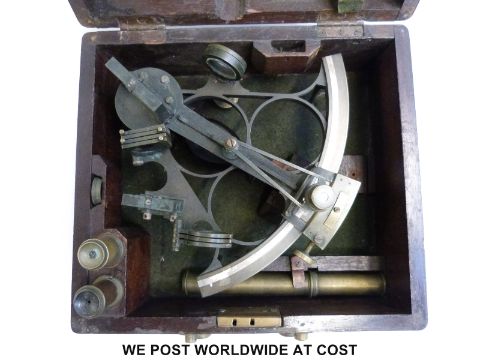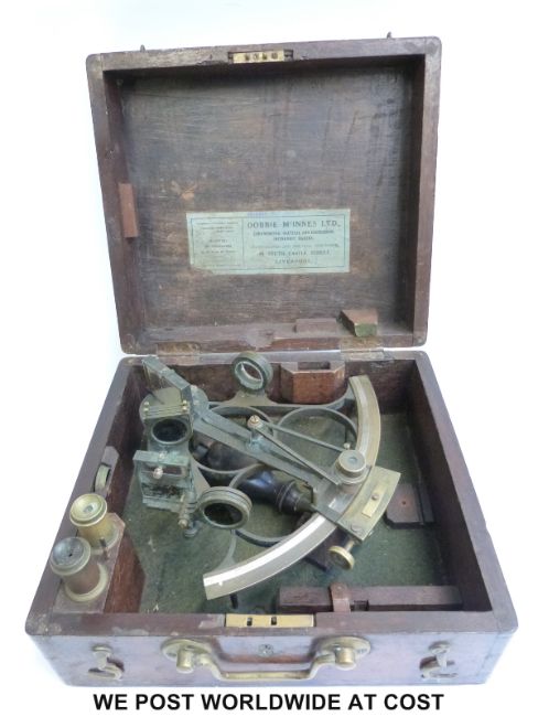 A cased 19th/ 20thC brass sextant by Dobbie McInnes Ltd, 39 Castle Street, Liverpool, together with detachable lens
