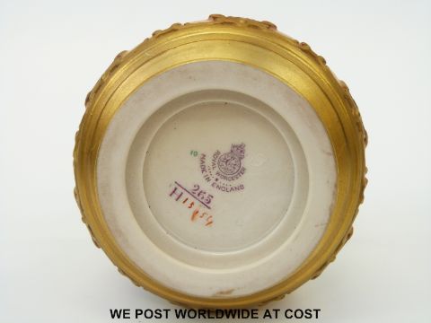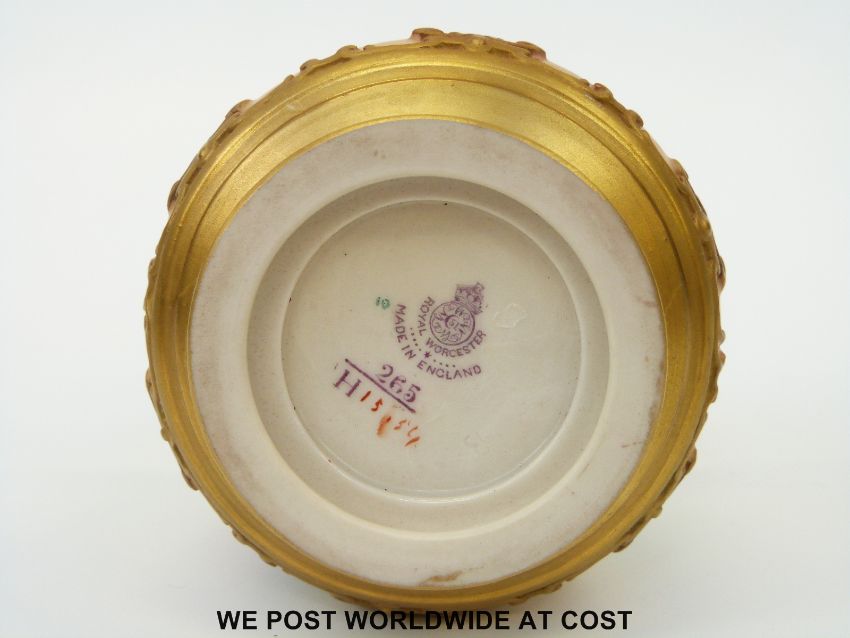 Royal Worcester squat vase hand decorated with roses, puce mark and shape no 265 to base (7cm tall)