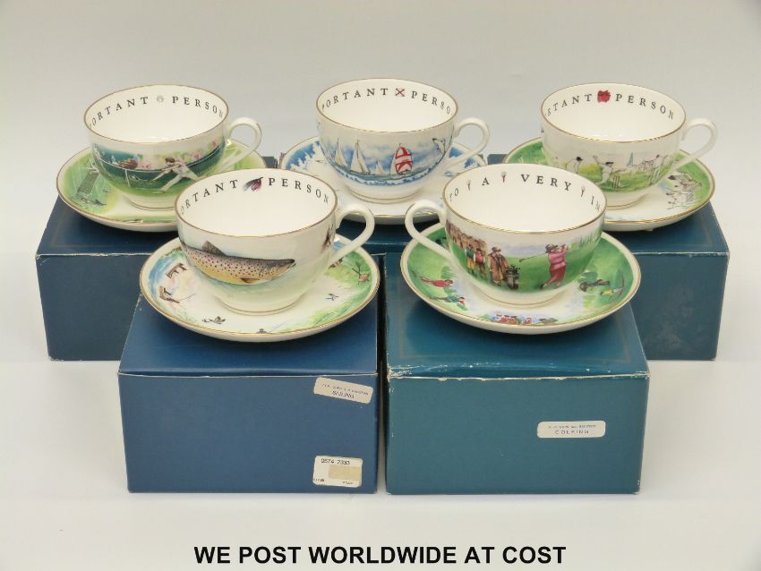 Five Royal Worcester oversized cup and saucer sets, boxed