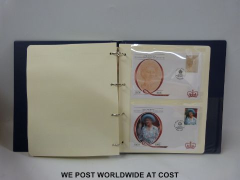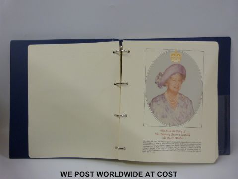 A part collection of Queen Mother birthday stamps and a malvern cover album