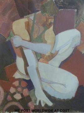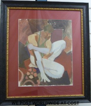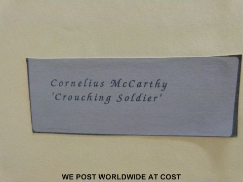 Cornelius McCarthy gouache "Crouching Soldier" in the cubist manner with label verso (49cm x 40cm)