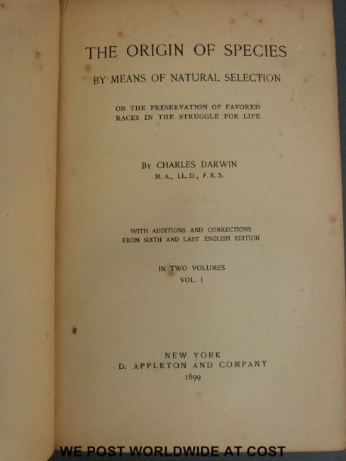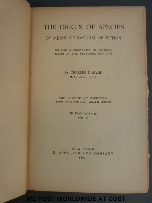 Charles Darwin,The Origin of the Species by Means of Natural Selection, with additions and corrections (1899) Original cloth