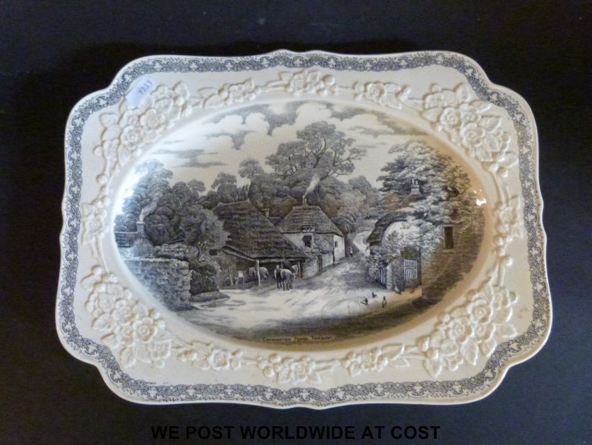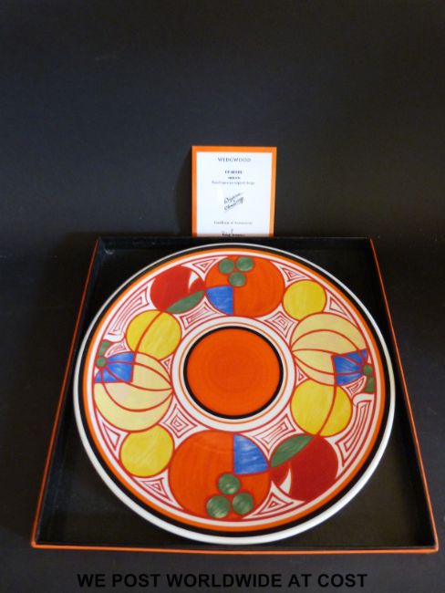 A large Wedgwood Clarice Cliff charger with box and certificate and a Crown Ducal meat plate Cockington Forge