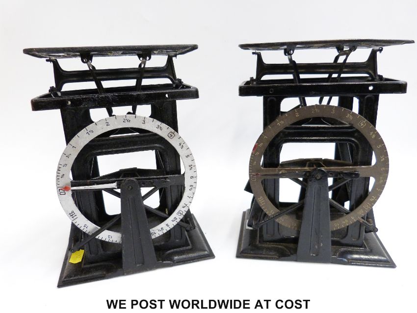Two bilateral circular dial type postage scales