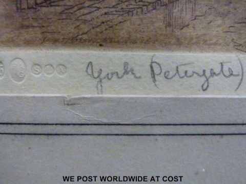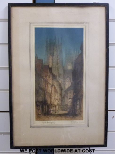 James Alphege Brewer signed coloured etching 'York (Petergate)' (40 x 21cm)