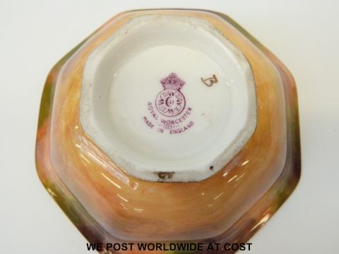 Royal Worcester octagonal pedestal dish decorated with painted fruit and signed E Townsend (diameter 12cm)