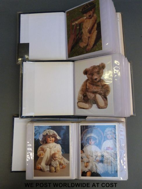 Three albums of postcards to include mid 20thC teddy bears & dolls
