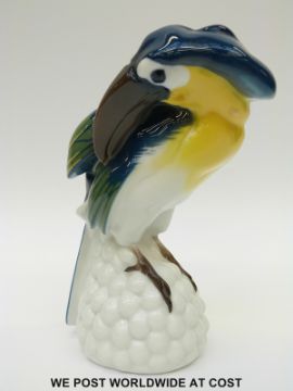 KPM/Berlin porcelain toucan with impressed signature J Feldtmann verso, with underglaze marks and 140/865 to base, probably limited edition marks (26cm tall)