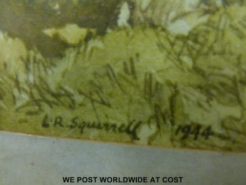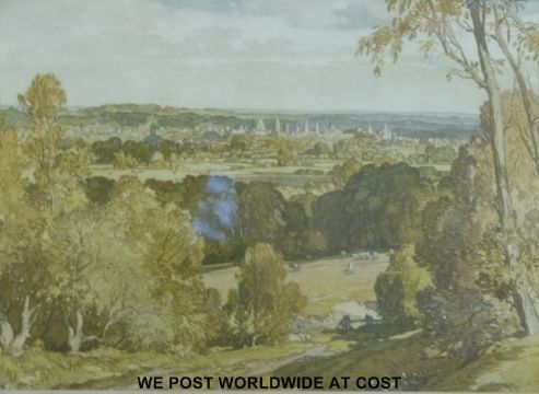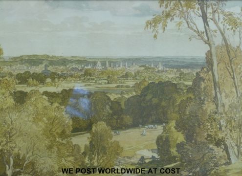 WITHDRAWN Leonard Russell Squirrell watercolour of the Oxford skyline from the Parks area, 1944 (28cm x 45cm)
