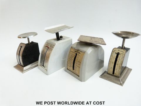 Four spring balances to include letter and egg scales