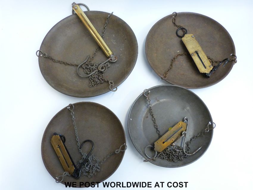 Four spring balances, all with attached pans