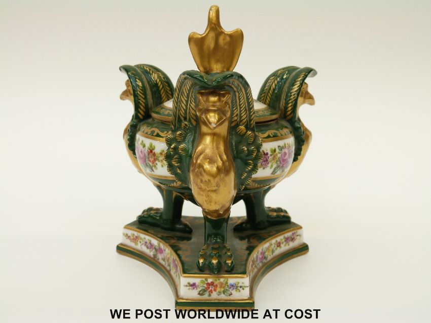 Sevres lidded inkwell with eagle finial (17cm tall)