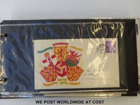 An early GB cover album, includes 1935 9d olive green SG447, Edward VIII, £1 brown SG478c, Coronation covers and early regionals
