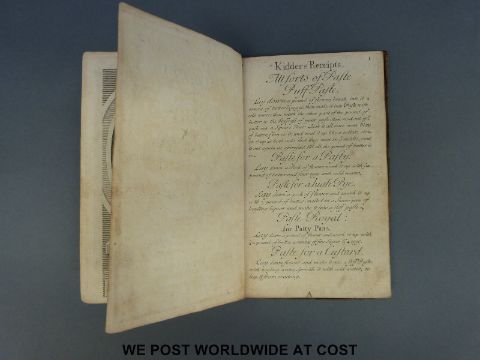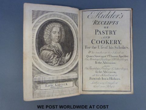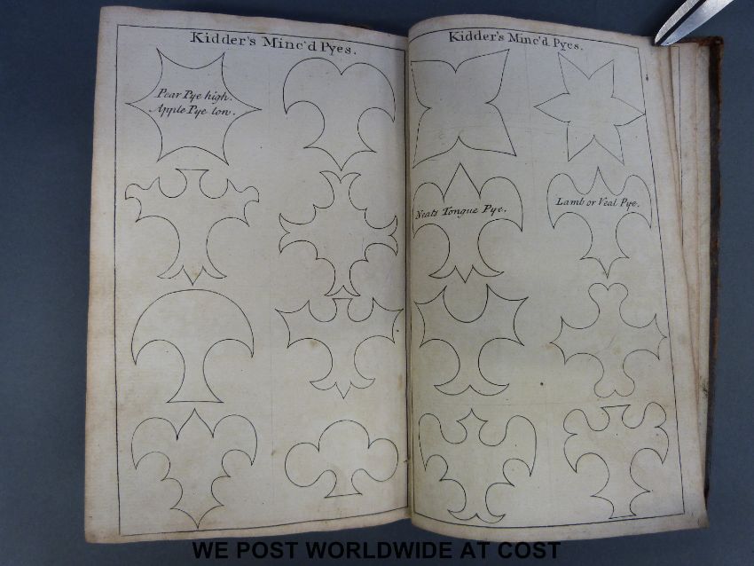 E Kiddler's Receipts of Pastry and Cookery for the Use of his Scholars (no publisher, c1720). Panelled calf, arguably first edition with fold-out and single page illustrations