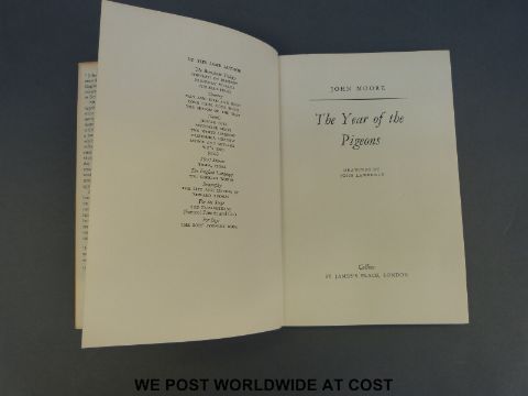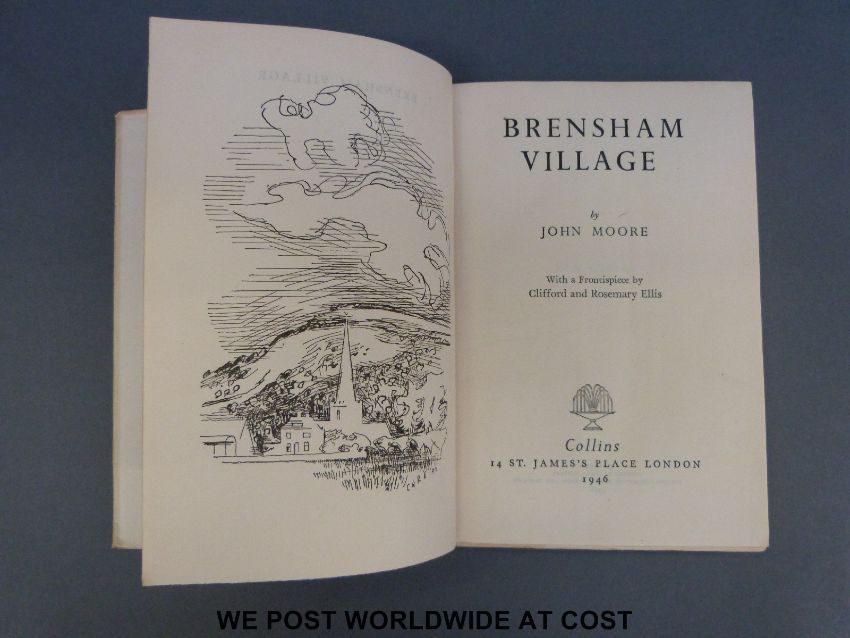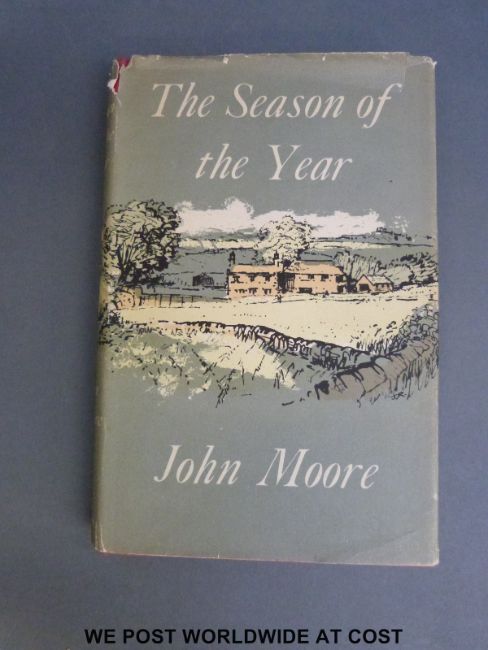 A selection of first editions by John Moore. Titles include Man and Bird and Beast; The Season of the Year; The Waters Under the Earth; Brensham Village; The Blue Field and Portrait of Elmbury