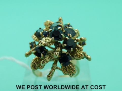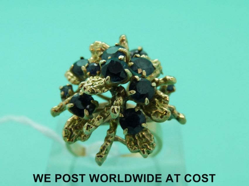 An 18ct gold ring set with round cut sapphires in a foliate design (size L)