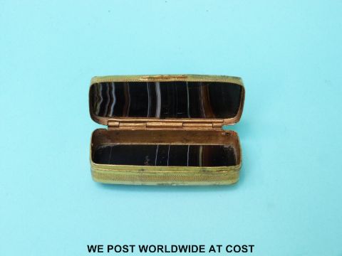 A double sided banded agate gilt metal vesta, length 6cm