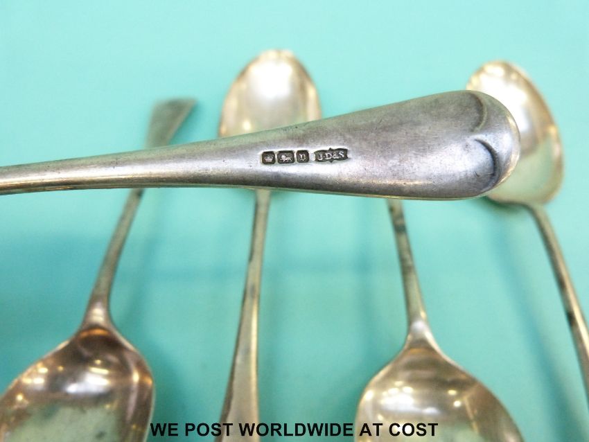 A set of five George V hallmarked silver Old English pattern dessert spoons, Sheffield 1913 maker James Dixon & Son, length 18cm (283g)