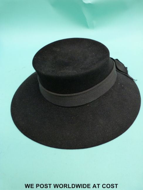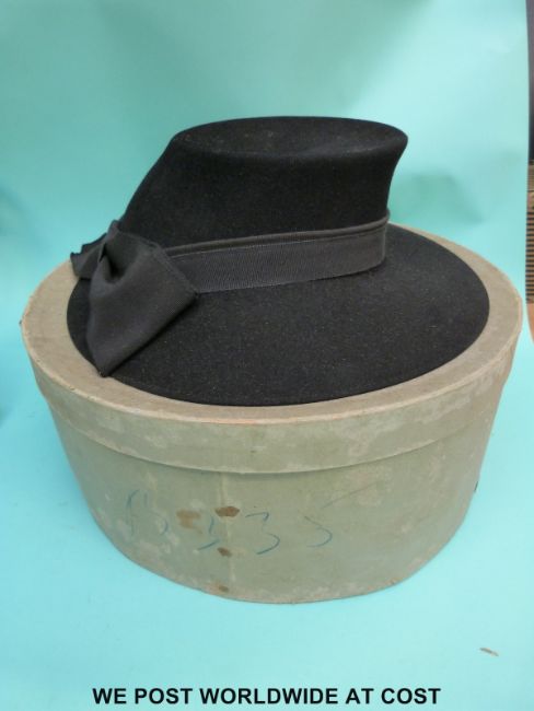 A c1940's ladies felt hat in a W. Gelbart Ltd Gloucester hat box