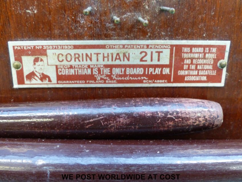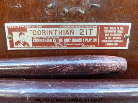 A Corinthian bagatelle board and a roll of velvet cloth.