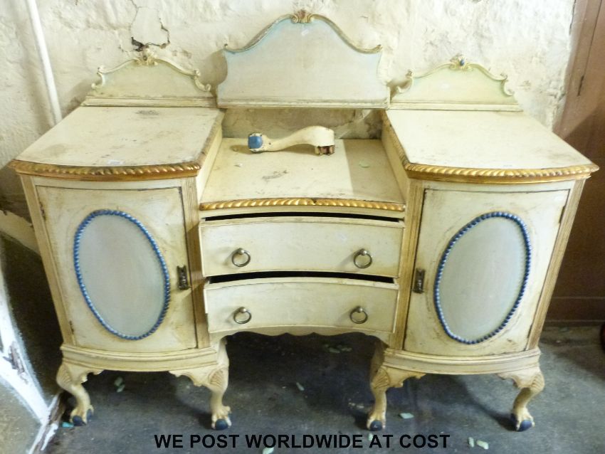 A French style breaktop serpentine fronted credenza raised on ball and claw feet (W153 x D59 x H112cm)