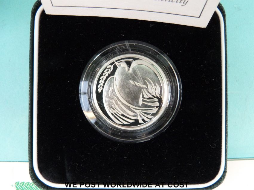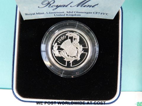 A 1986 XIII Commonwealth Games for Scotland cased silver £2 coin together with a WWII 1995 silver proof example, both with certificates, and a cupro-nickel example