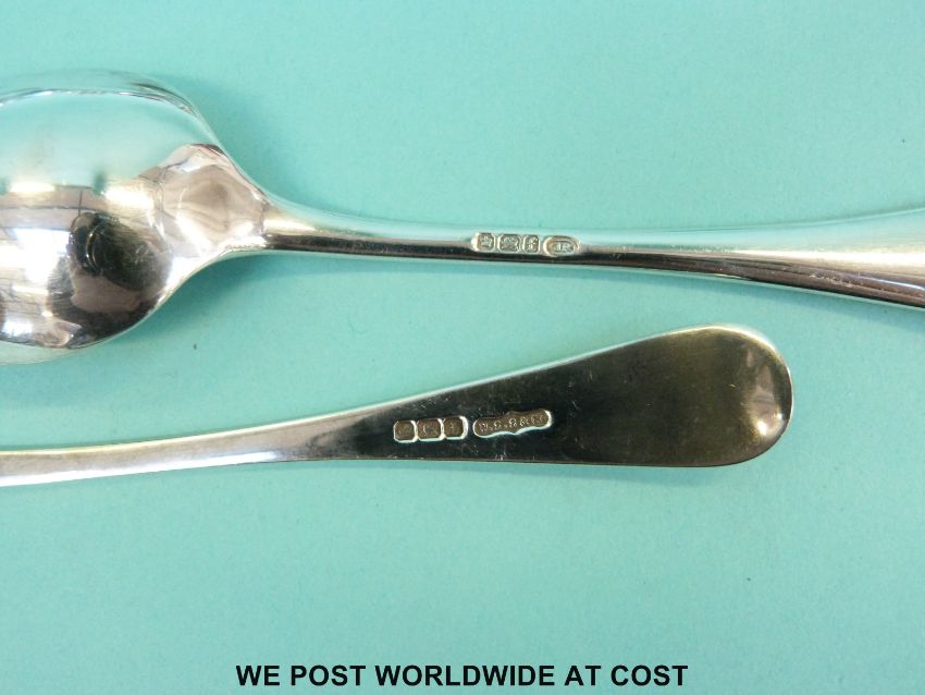 A quantity of hallmarked silver cutlery including a set of six Bateman teaspoons, mustard spoon, napkin rings etc (330g), a hallmarked silver ARP badge, white metal fork marked 830, two Churchill crowns etc.