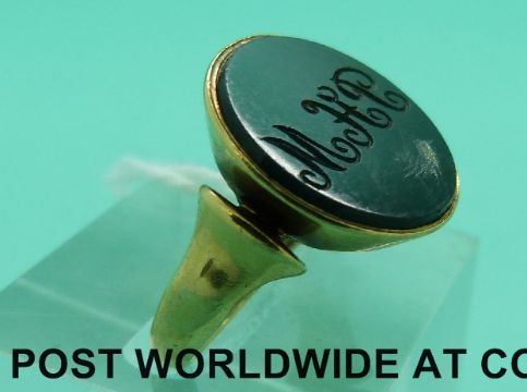 A hallmarked 18ct gold intaglio ring set with blood stone, Birmingham 1900 (5.7g, size J)