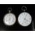 Two continental white metal pocket watches, one with inset subsidiary seconds dial, Roman numerals and white enamel dial, the other with Roman numerals, painted enamel dial, gold hands and engraved case.