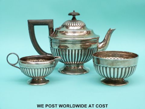 A Victorian Mappin & Webb hallmarked silver bachelor's tea set with reeded decoration, Sheffield 1896/1897, height of teapot 12.5cm (545g all in)