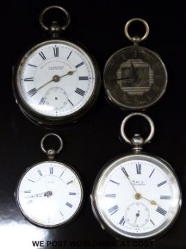 Four hallmarked silver and white metal pocket watches comprising a Kay's Triumph, J.G. Graves The 'Express' English Lever, Payne & Co and a continental example with self coloured face and engraved scene to the dial.