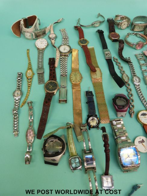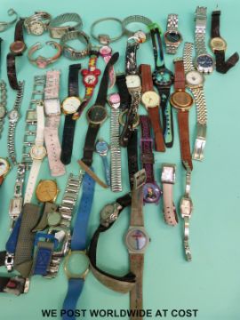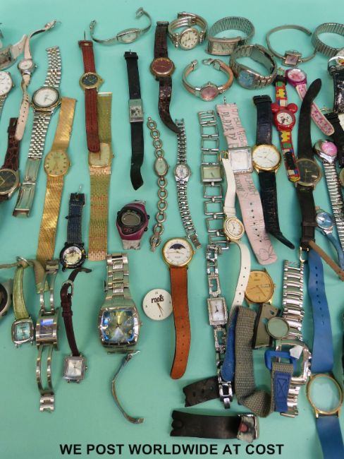 Over 50 various ladies and gentleman's wristwatches including Timex, Lorus, Barbie etc.