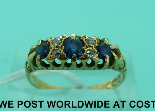 An 18ct gold ring set with sapphires and diamonds (size O)