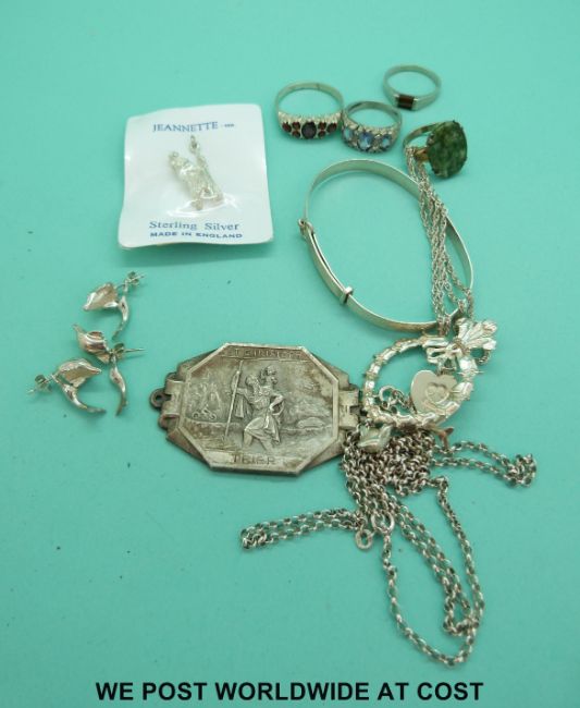 A quantity of silver jewellery to include rings, bracelet, necklace etc