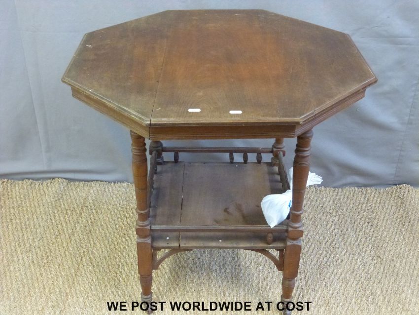 A late 19thC/early 20thC mahogany octagonal sidetable with galleried shelf below (width 77cm)