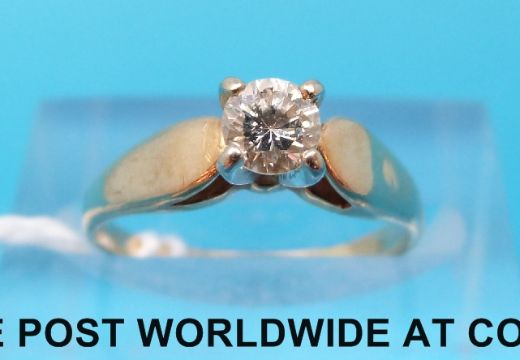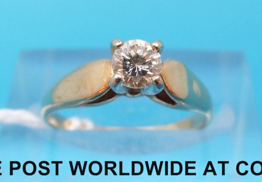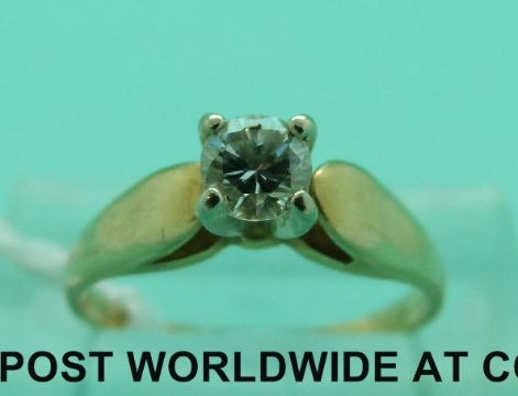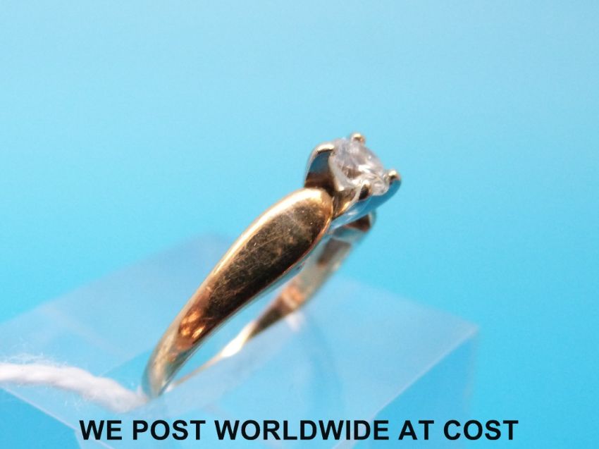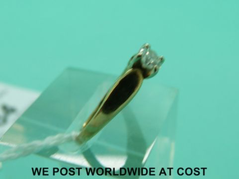 A yellow metal ring marked 14ct set with a round brilliant cut diamond (size I)