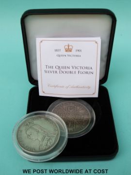 Two 1890 double florins, one with certificate