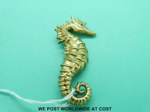 A yellow metal brooch marked 18k in the form of a sea horse with ruby eyes (25.1g)
