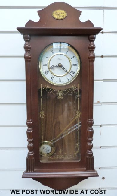 Two contemporary wall clocks in traditional style, one a German Westclox, the other a President