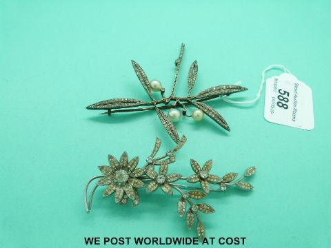 A large silver brooch in a foliate design and a paste brooch in the form of flowers