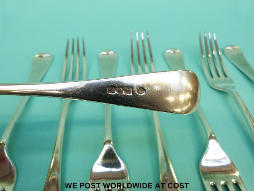 A set of eight George V hallmarked silver Old English pattern forks, London 1910 maker William Hutton & Sons Ltd, length 21cm (607g)
